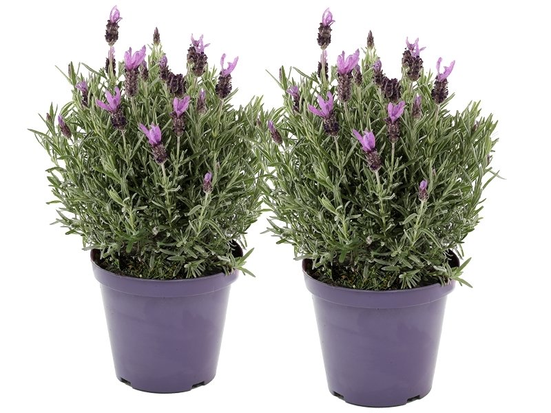 Er bestaan verschillende prachtige gekweekte Franse lavendelsoorten zoals de blauwpaarse Lavandula stoechas 'Pedunculata', de 'Anouk Pink' met een wat rozige kuif, en de witte 'Snowman'. Kies zelf jouw favoriet of neem ze gewoon allemaal!