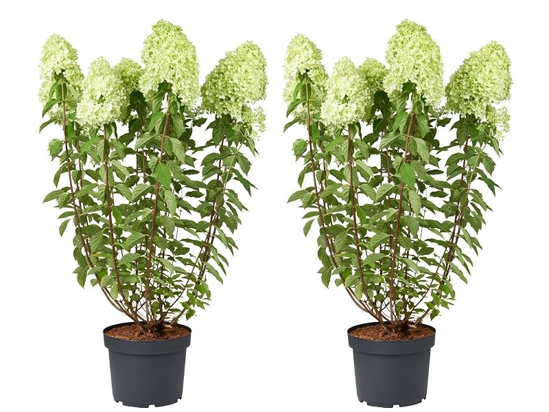 De populaire Hydrangea paniculata bloeit in augustus, september en oktober. Wanneer je niet of nauwelijks snoeit kan deze Hydrangea tot 2 meter hoog worden. Pluimhortensia zijn goed winterhard (ze verdragen tot -25 graden). Wel zijn de blaadjes in de winter even weg.