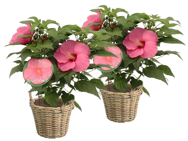 Oorspronkelijk komt de Hibiscus overal in de wereld in zowel tropische als subtropische streken voor. Vooral bekend zijn de tuinhibiscus (Hibiscus syriacus) of altheastruik en natuurlijk de Chinese roos (Hibiscus rosa-sinensis). De Moscheutos 'Extreme' is met 1 tot 1,5 meter een vrij laagbloeiende hibiscussoort die enorme schotelvormige bloemen vormt met een diameter van wel 20 cm. Deze heester komt pas vanaf juli tot volle bloei en toont je tot de eerste nachtvorst in de herfst haar geweldig grote kleurrijke bloemen. Ze is vorstbestendig, verliest in de winter wel haar diepgroene bladeren, maar die komen in het voorjaar gewoon weer terug.