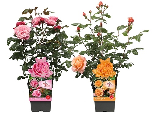 - Rosa Wildberry®: de kleur van de bloemblaadjes van de prijswinnende Rosa Wildberry® verandert van een intense wilde bessentint aan de buitenkant naar meer zachtroze in het midden. Ze zijn bovendien erg sterk en kunnen goed tegen een regenbuitje. De bloemen van deze sterke theehybride groeien elk aan een stevige stengel en de bladeren blijven lekker lang aan de takken. De struik wordt zo’n 70 tot 100 cm hoog.